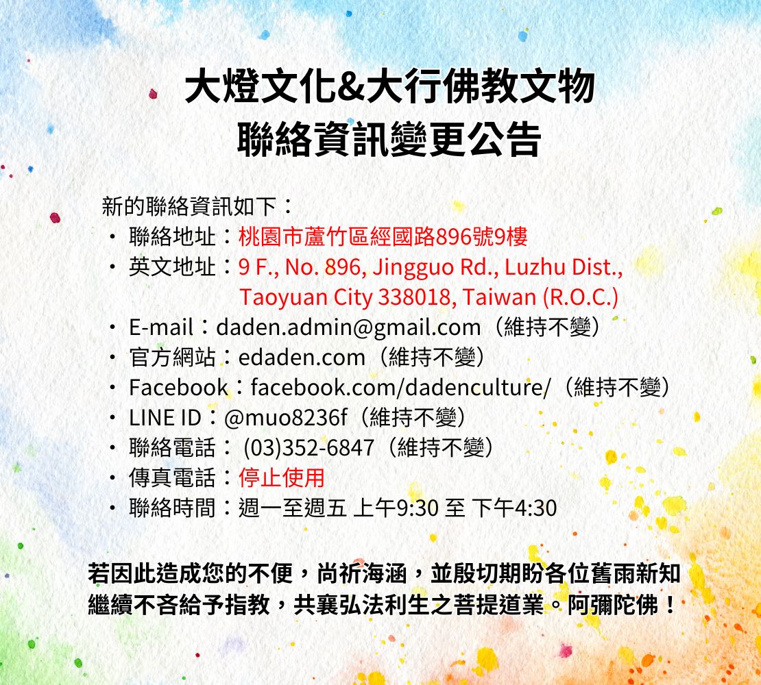 大燈文化&大行佛教文物聯絡資訊變更公告