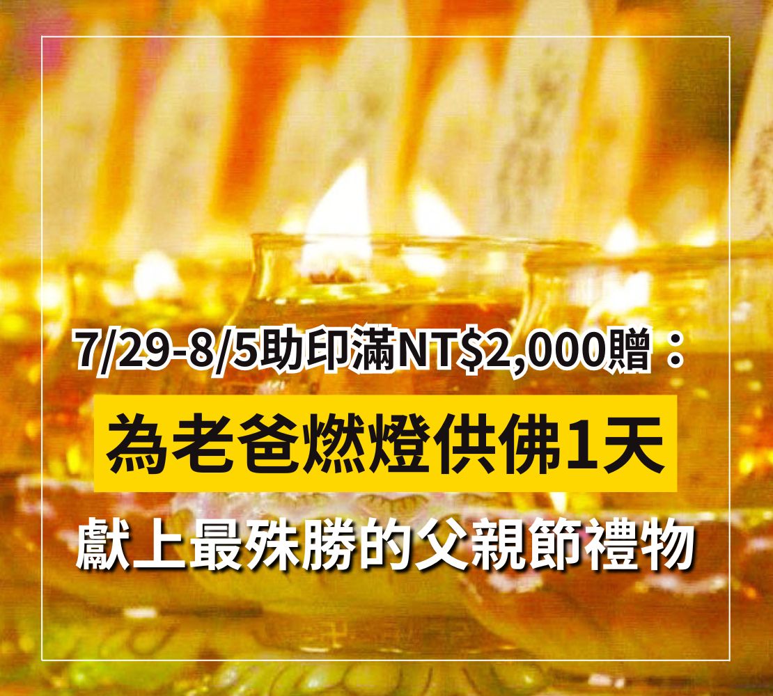 7/29-8/5,助印滿NT$2,000元,贈8/7天赦日為父親佛前供燈一天!